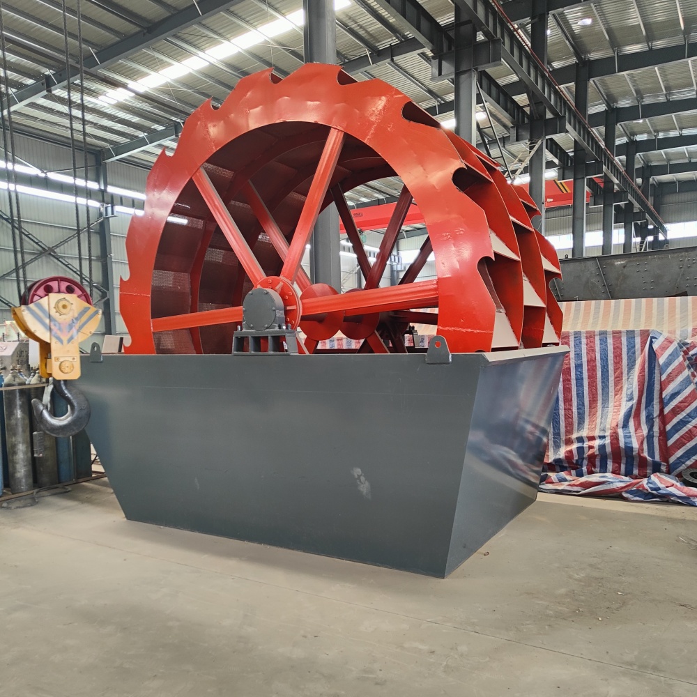 Пескомоечные установки с грейферным колесом XSD-серии, производимые нашей компанией, предназначены для очищения песка и гравия от почвы и мусора. Они просты в обслуживании, обладают большой производительностью, низким энергопотреблением и высокой эффективностью очистки. Пескомоечная установка монтируется под углом 15 градусов. Нижняя часть резервуара для воды окружена тремя водосливными пластинами, формирующими отстойник. Головка шнека погружена в отстойник, шнек приводится в движение двигателем через редуктор для непрерывного вращения, вода для очистки подается через пористую пластину на дне отстойника. Установка выполняет три функции: очистка, обезвоживание и сортировка. Этот тип пескомоечных установок широко используется в металлургии, при производстве строительных материалов, в дорожном строительстве, в гидроэнергетике и других отраслях промышленности для очистки, сортировки и удаления примесей из песка с различной крупностью фракции. В особенности данный тип установок востребован при производстве песка для литья, стекольных заводов и для засыпки нефтяных скважин.