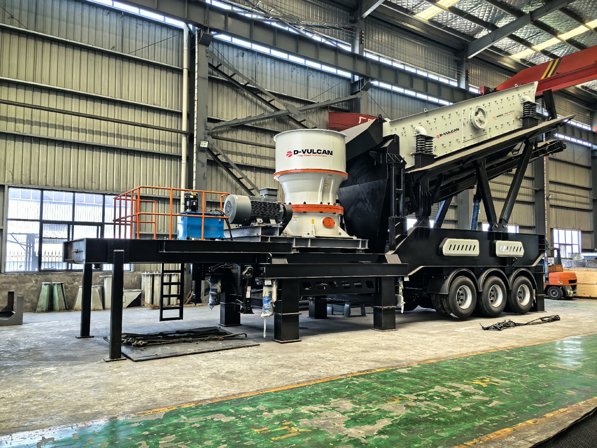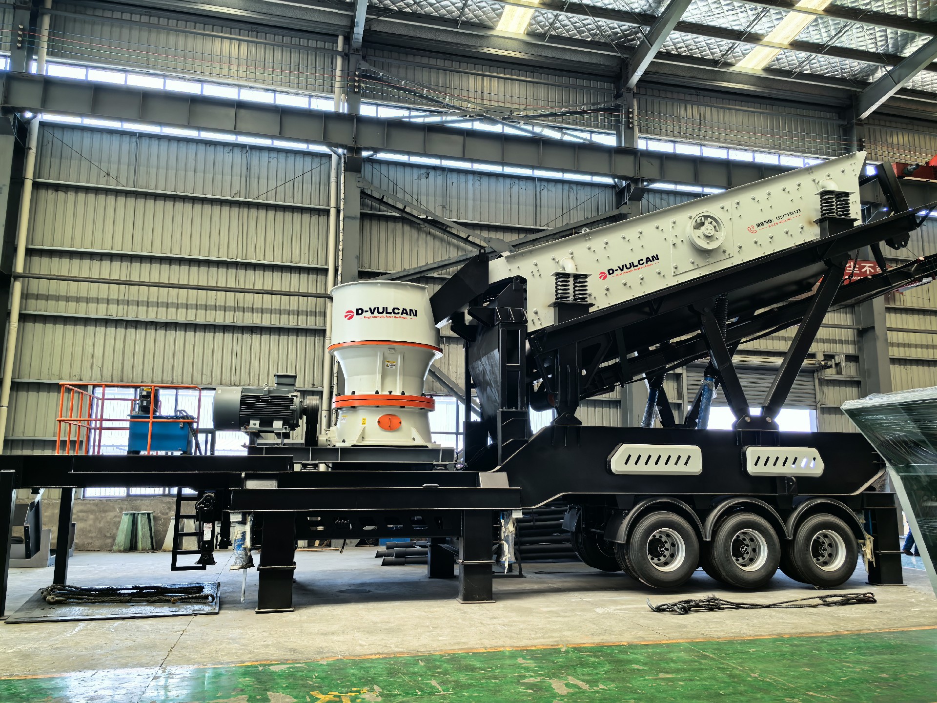 2. Автоматизированная система дробления, способная работать как независимо, так и в сочетании с другим дробильным оборудованием, таким как мобильная щековая дробилка, мобильная машина для производства песка и другим оборудованием для максимального удовлетворения потребностей производства.